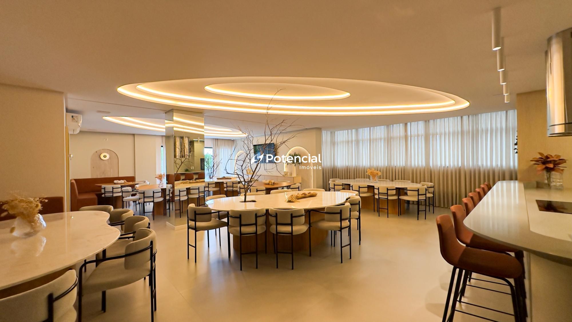 O imóvel conta com 3 suítes, 2 vagas de garagem e um projeto moderno e funcional. O living é integrado à sala de jantar, proporcionando um ambiente amplo e aconchegante. A cozinha é bem distribuída e integrada à área de serviço, além de lavabo para maior comodidade.