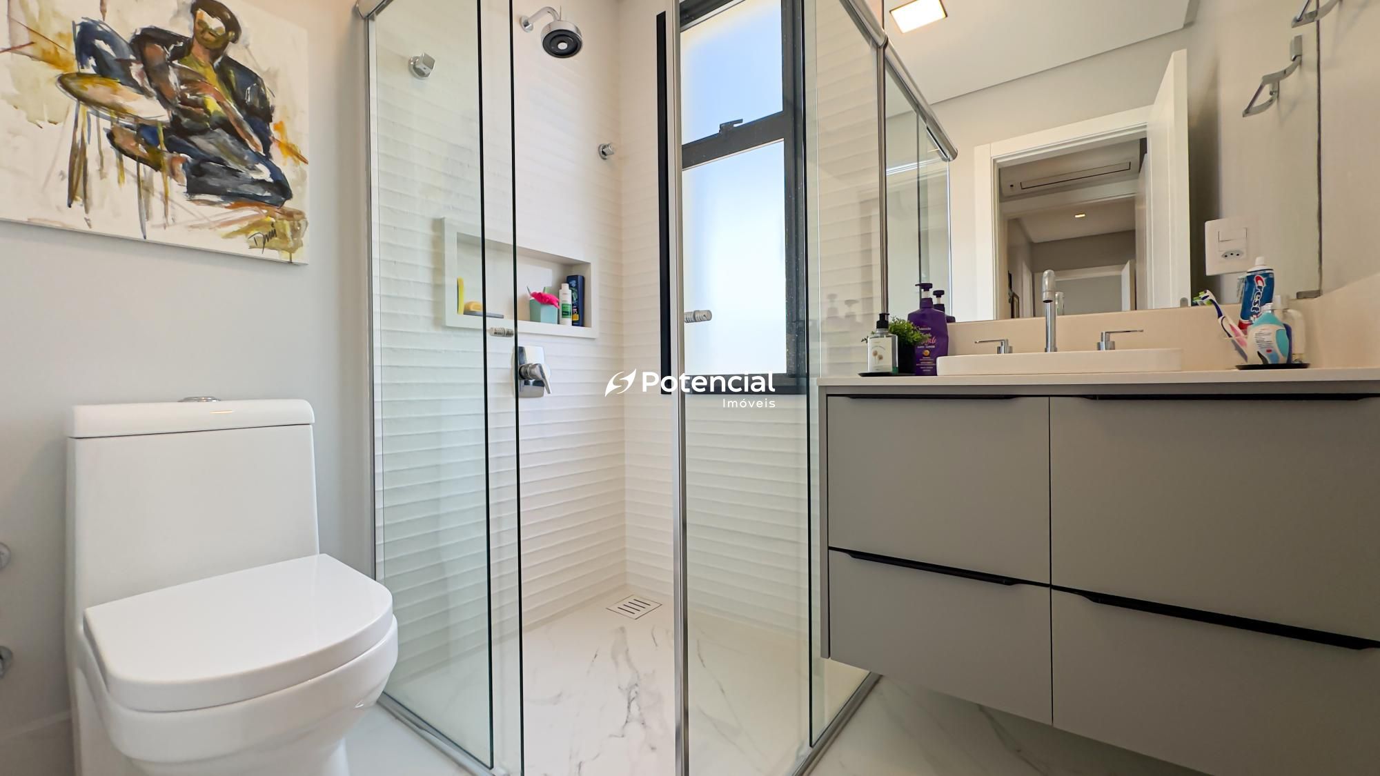 Com 180 m² de área privativa, este imóvel se destaca pelo excelente padrão de acabamento e pela distribuição inteligente dos espaços. São 4 suítes, sendo uma suíte master com banheira, proporcionando ainda mais conforto, privacidade e bem-estar.