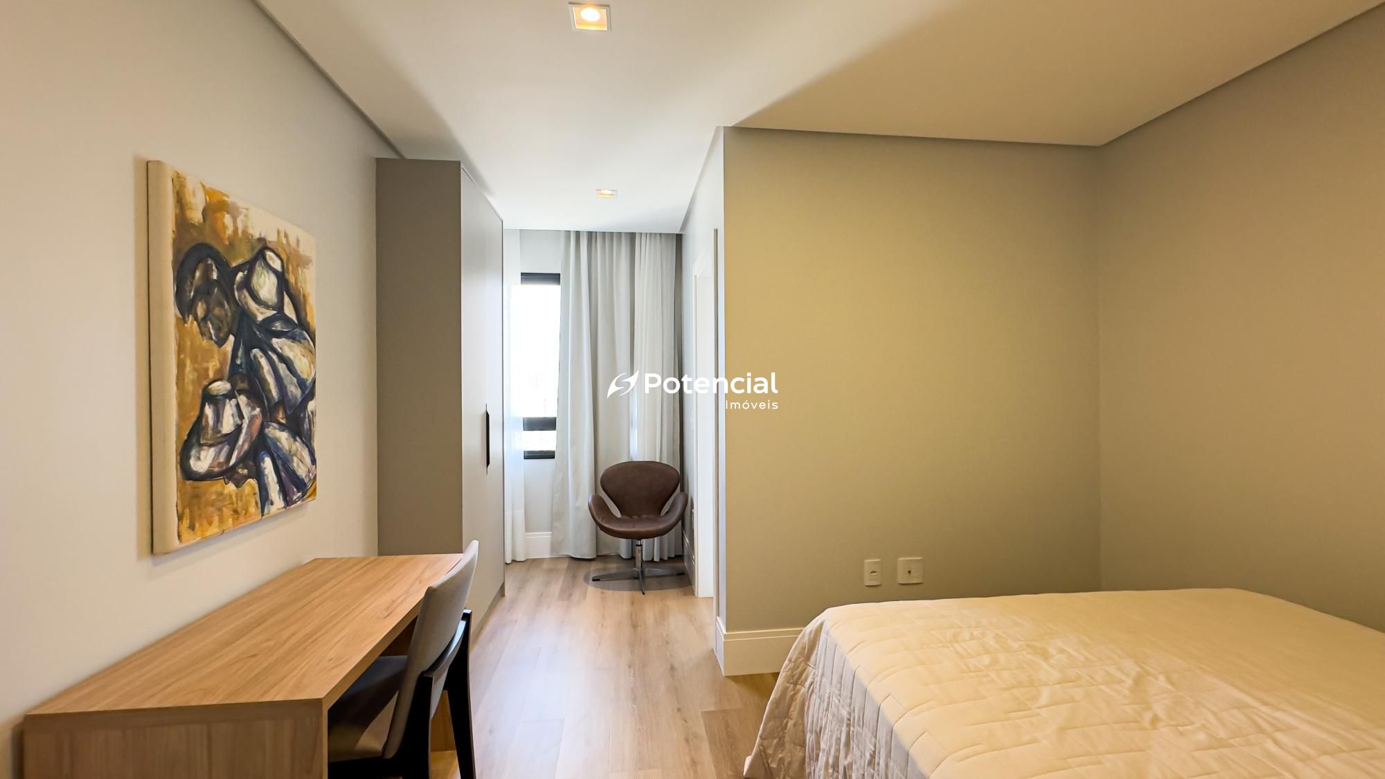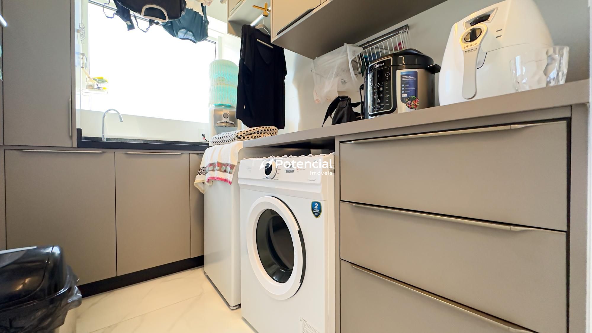 O apartamento conta ainda com lavabo, cozinha funcional, área de serviço e está totalmente mobiliado, pronto para morar, unindo praticidade e sofisticação em cada detalhe.