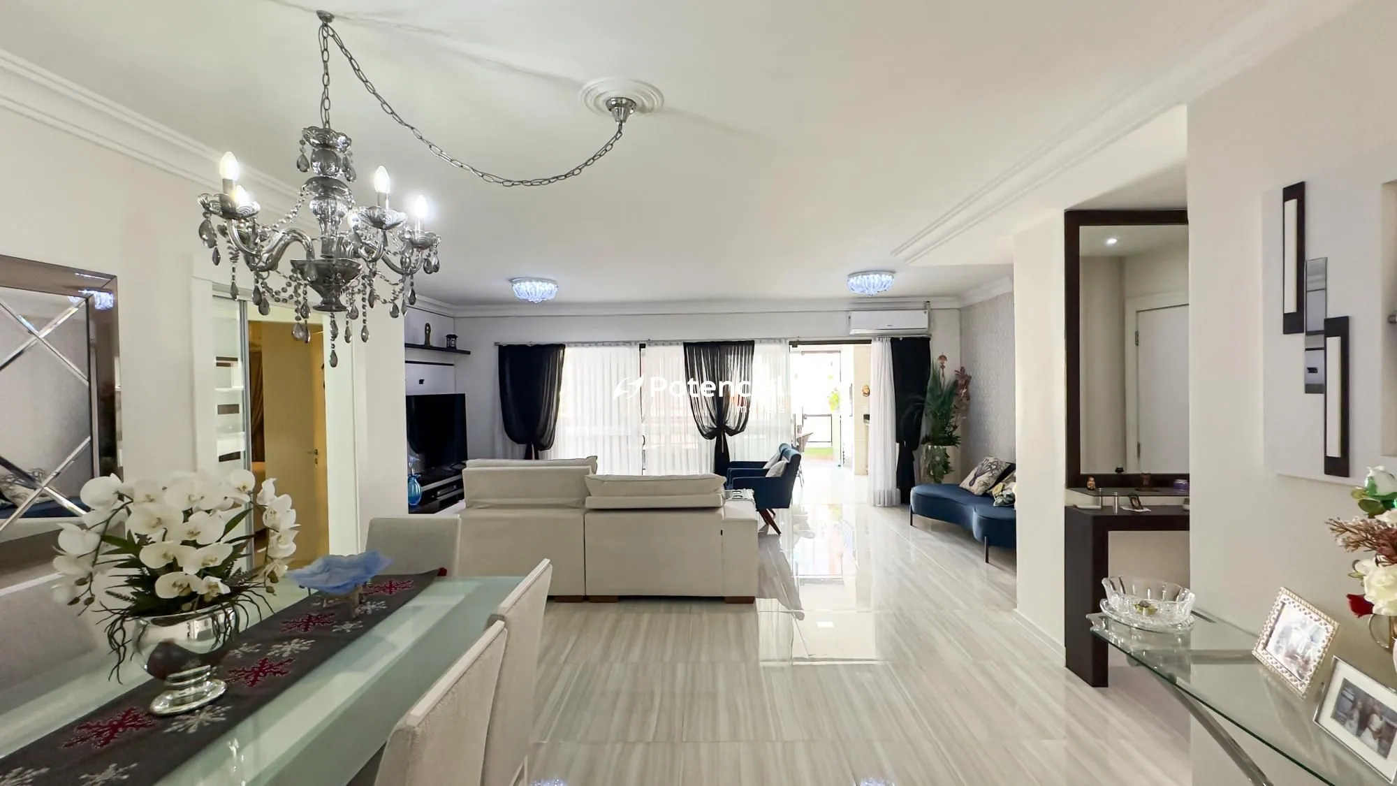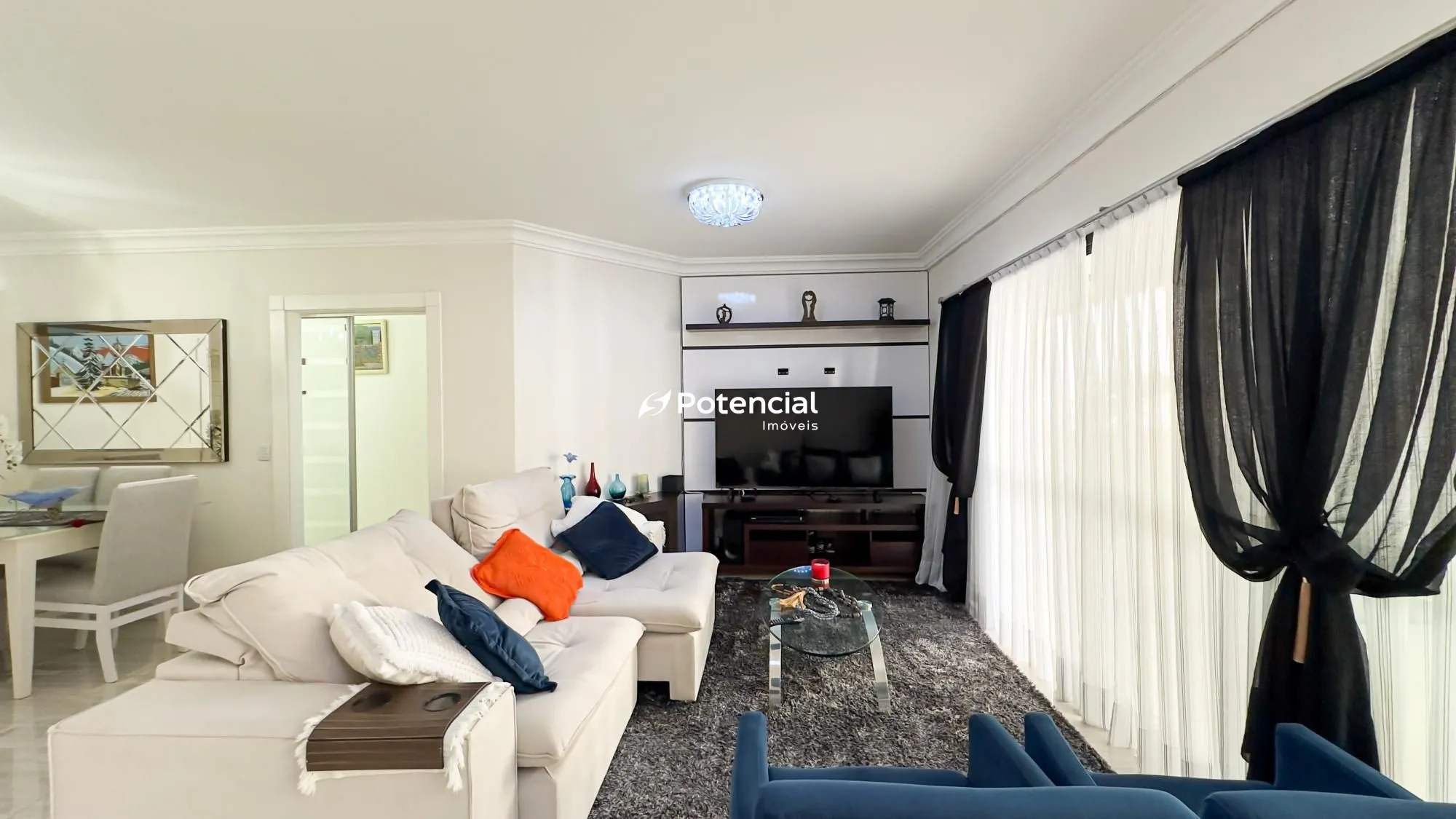 O imóvel conta com 3 dormitórios, sendo 2 suítes, além de banheiro social. Possui uma ampla sala de estar e jantar integradas, proporcionando conforto e excelente iluminação natural. A cozinha é funcional e integrada à área de serviço, e ainda possui um banheiro completo de apoio a cozinha e área de serviço.